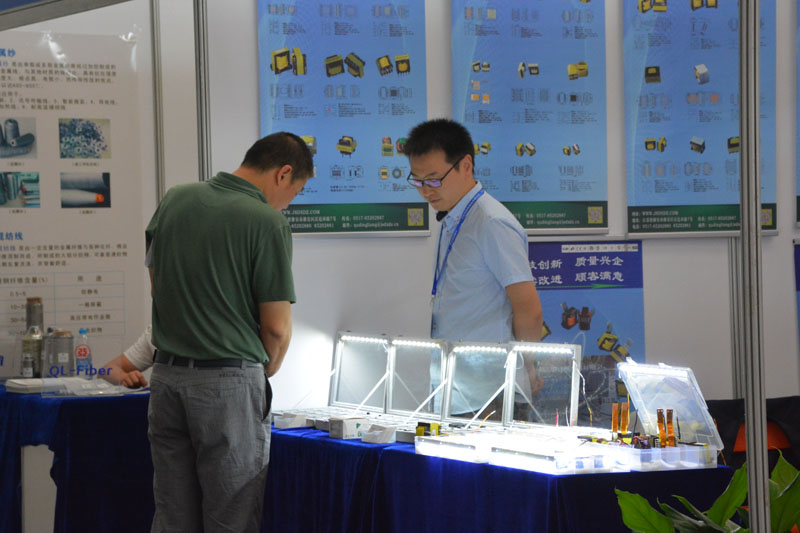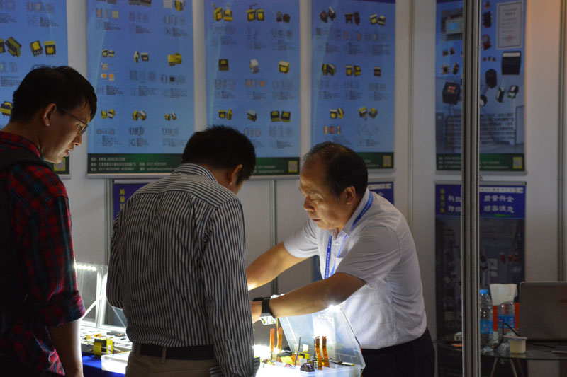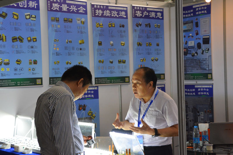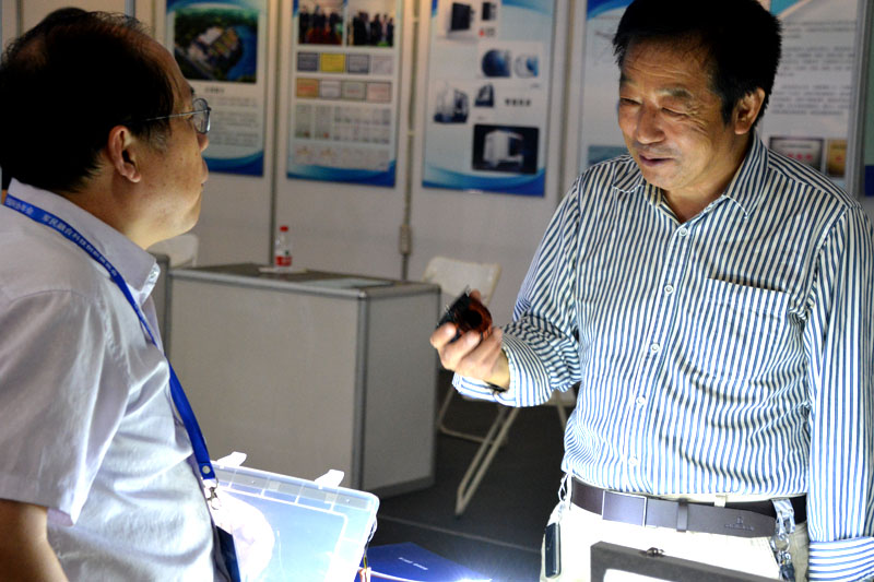 公司總經(jīng)理在展臺前與參觀者在交流產(chǎn)品